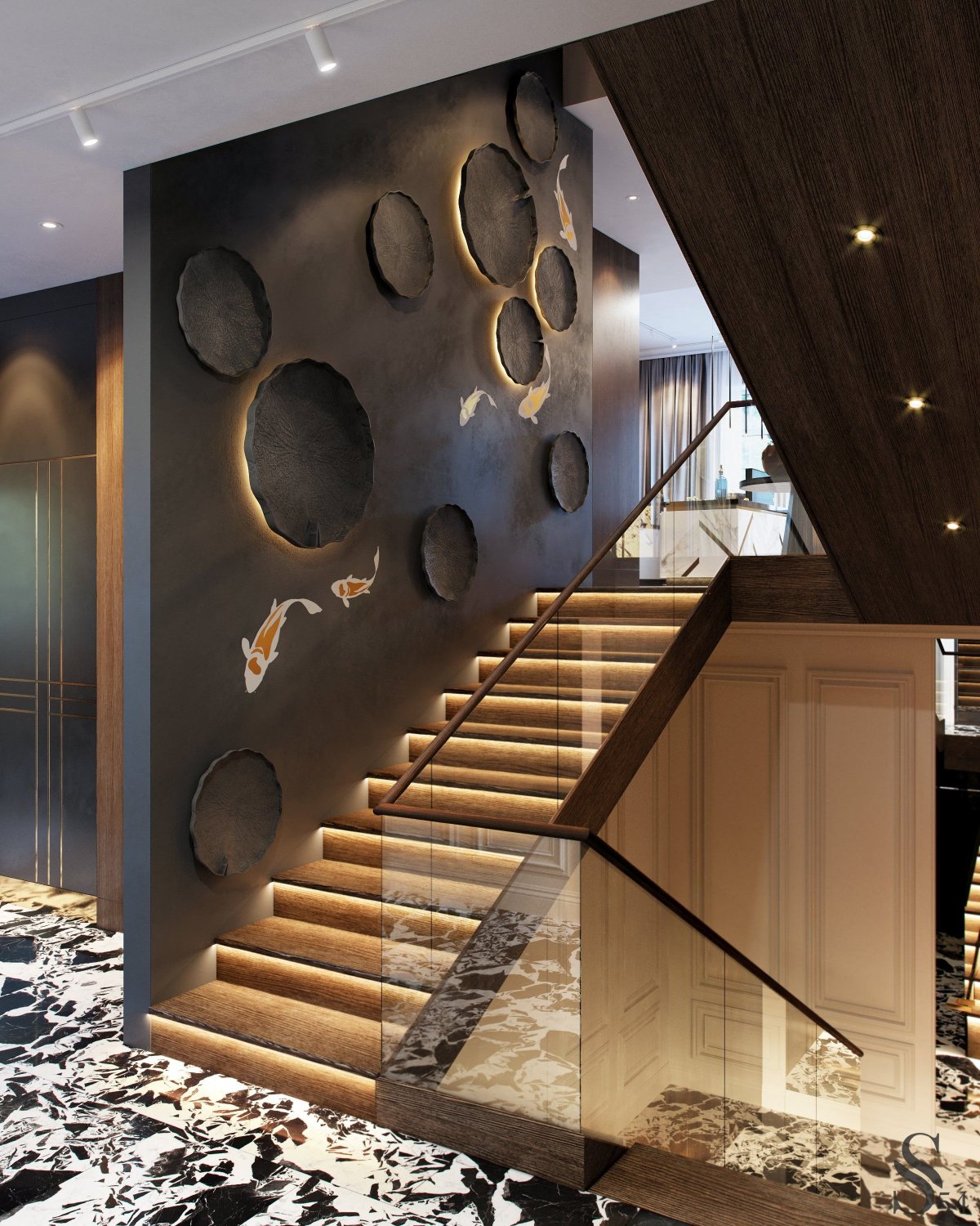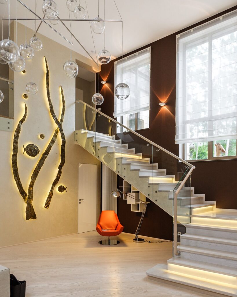 კიბის დიზაინის მოპირკეთება დამოკიდებულია თუ რა სტილში აკეთებთ ინტერიერის დიზაინს – შესაძლებელია ქვით, ხით  მარმარილოთი ან თუნდაც მინით მოპირკეთება