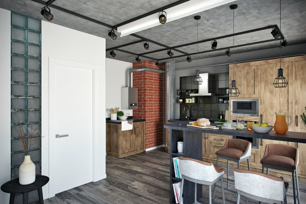 ლოფთის სტილი – ახალგაზრდული , აგურის დეტალებით
