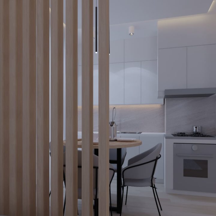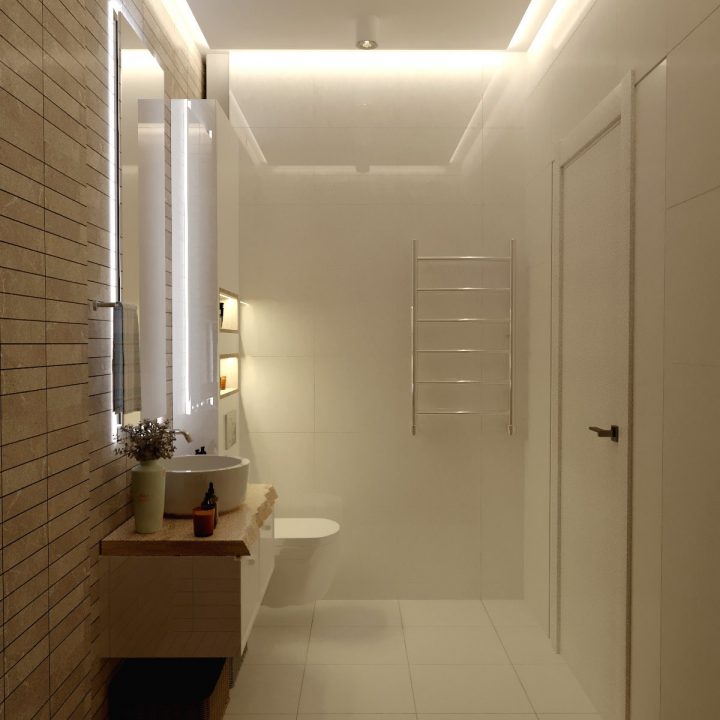 ჩვენს მიერ შესრულებული 115 კვადრატი ბინის დიზაინი მინიმალისტურ სტილში