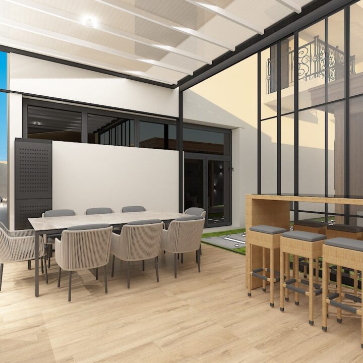 ჩვენს მიერ შესრულებული კერძო სახლის ეზოს დიზაინი