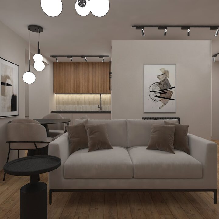 - შავ-თეთრი ბინის დიზაინი – 75 კვადრატი