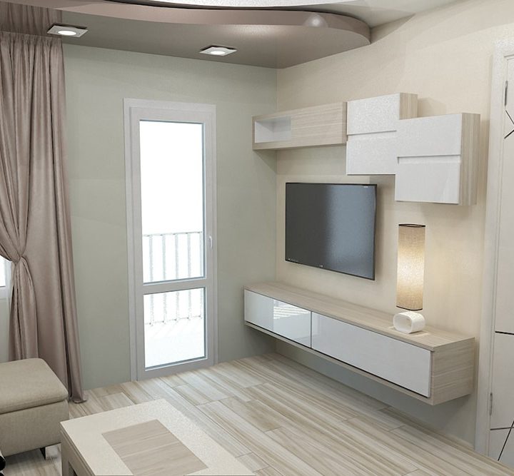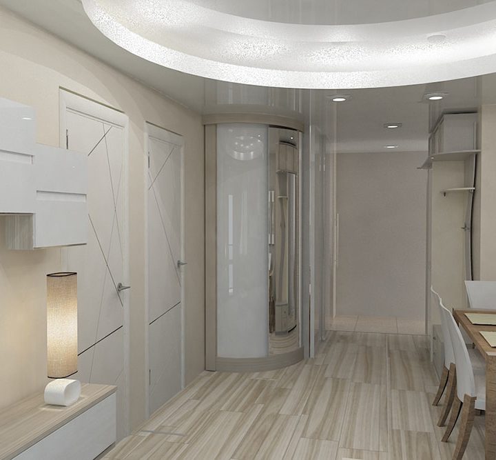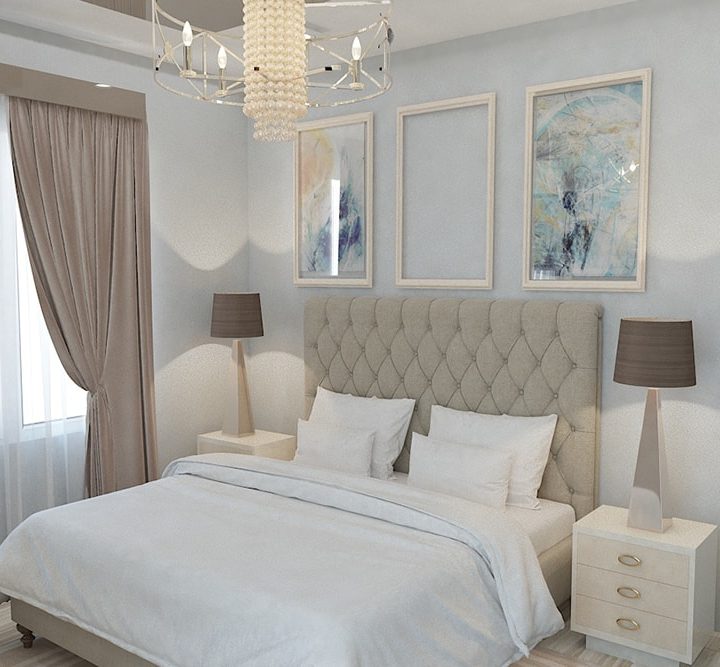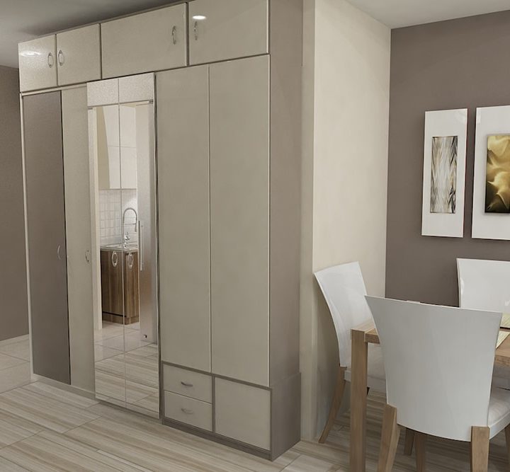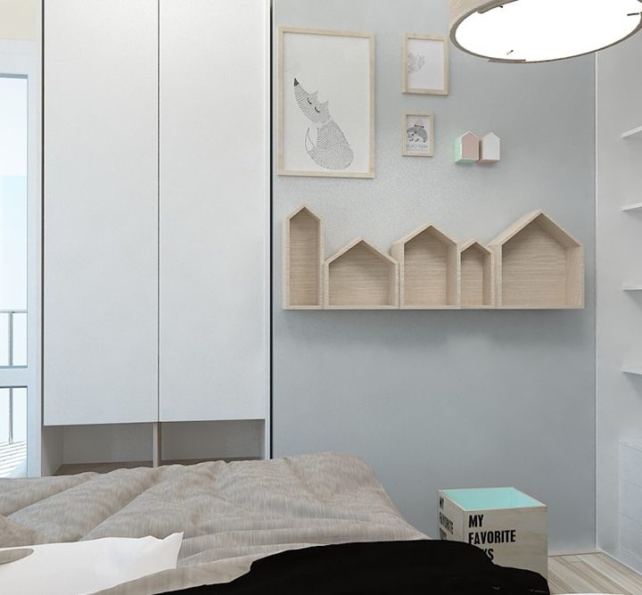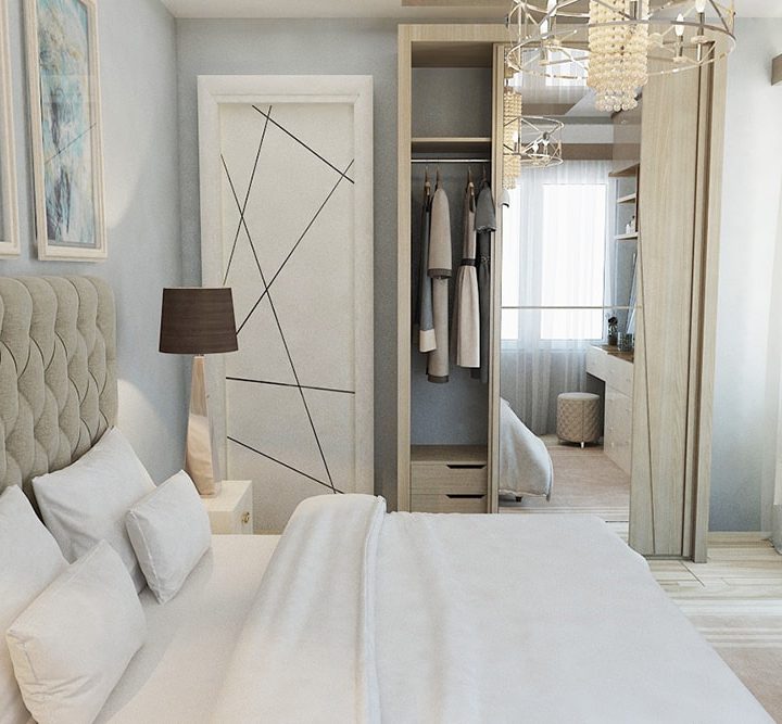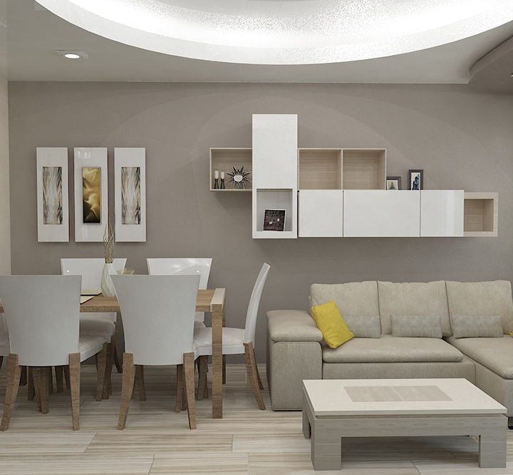 საოჯახო ბინის ინტერიერი – ორი საძინებლით , მისაღებით, სამზარეულოთი და შემოსასვლელით