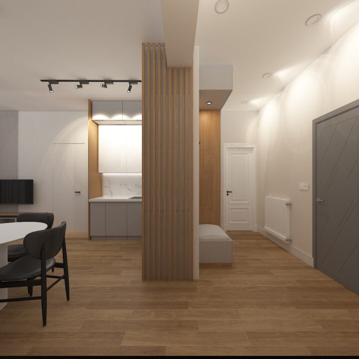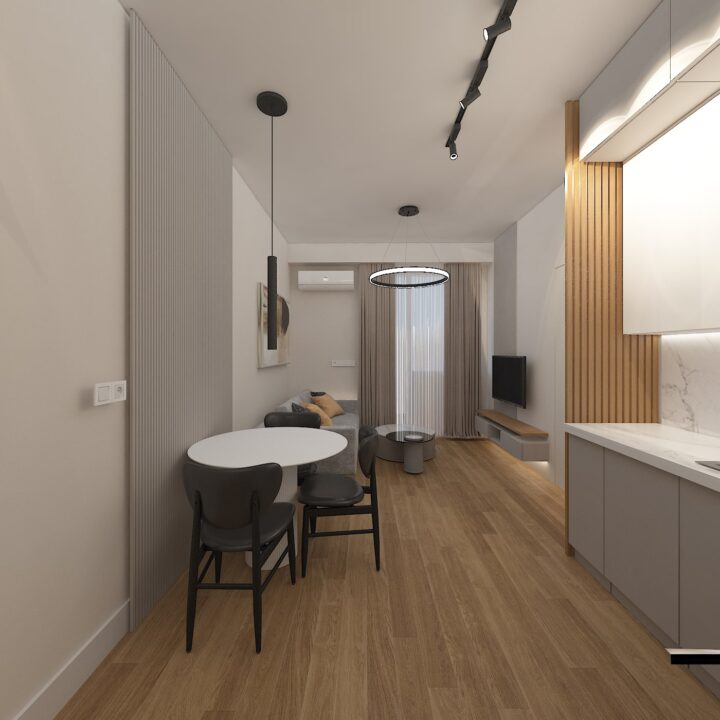 მისაღები-სამზარეულო-ჰოლი – 23 კვადრატული