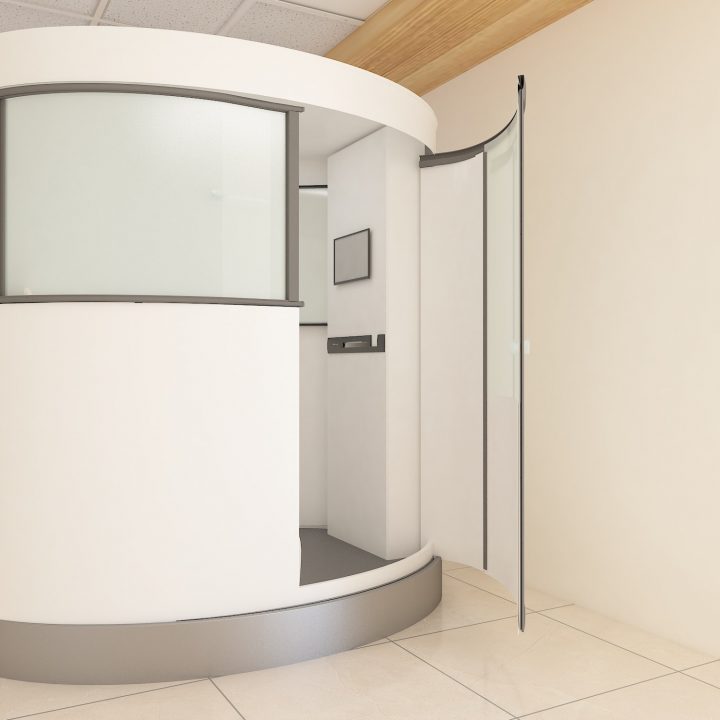ჩვენს მიერ შესრულებული სამედიცინო ჯიხურის დიზაინი – გარე და შიდა მოხმარებისთვის