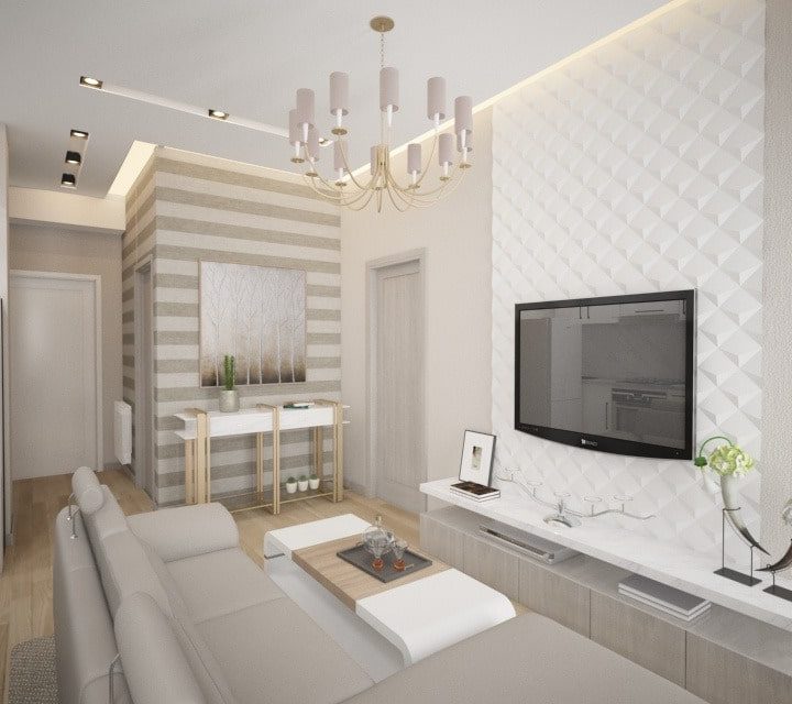 ჩვენს მიერ შესრულებული ბინის დიზაინი ნათელ ფერებში,