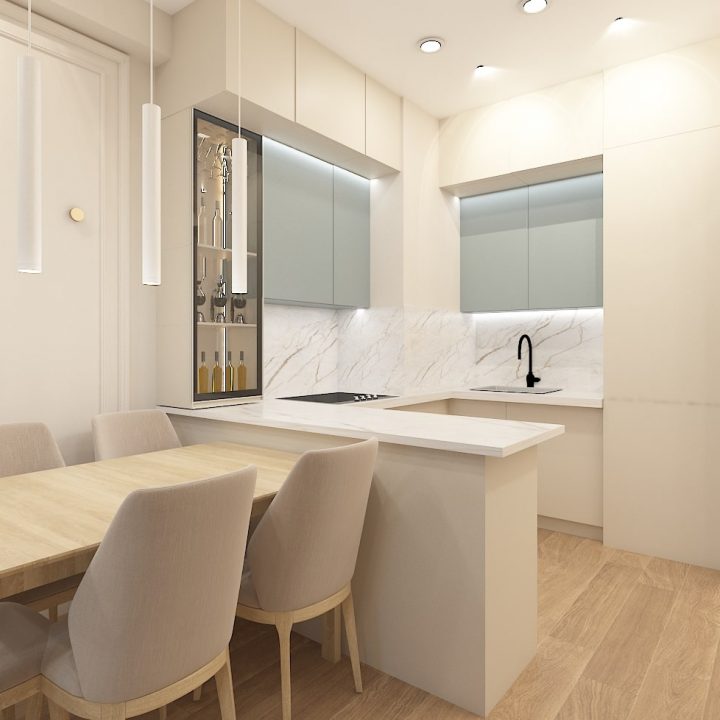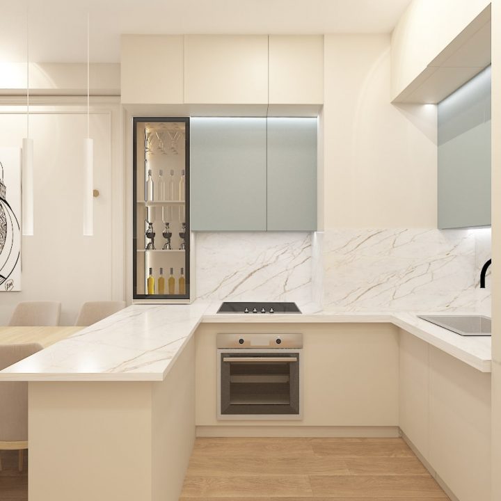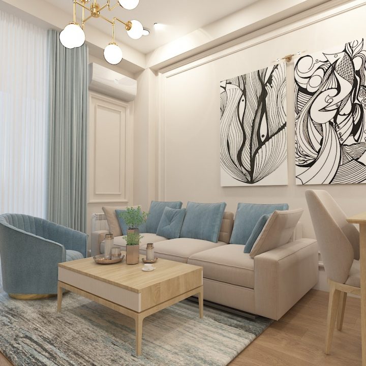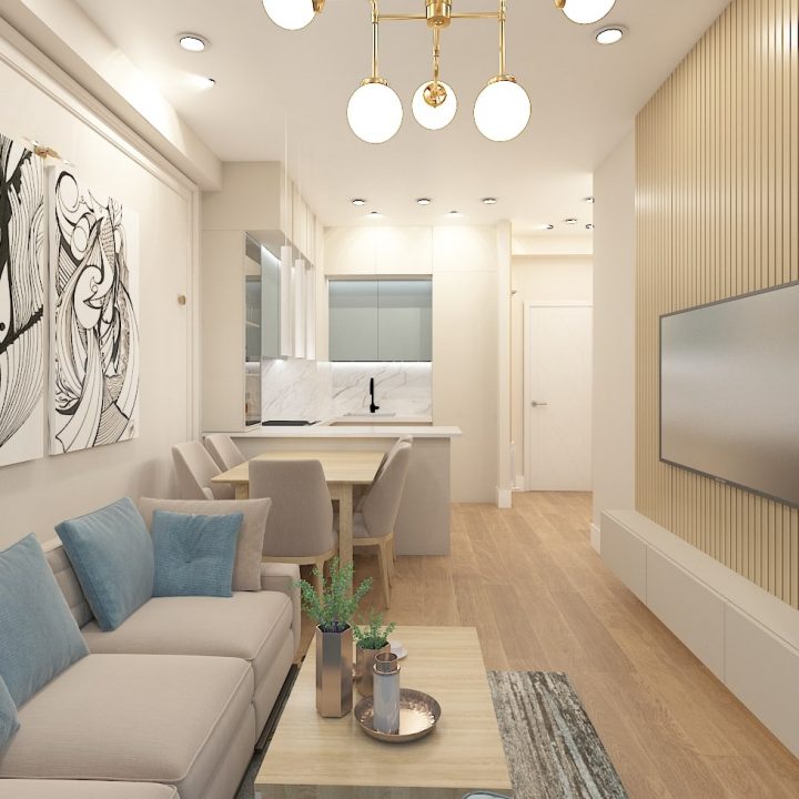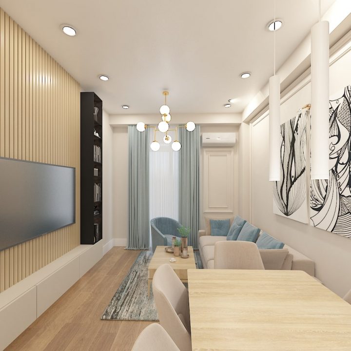 მისაღები-სამზარეულო-შემოსასვლელი – 22 კვადრატული