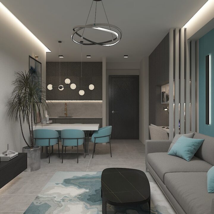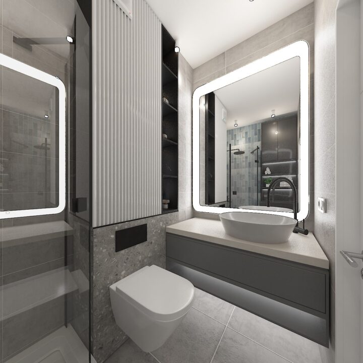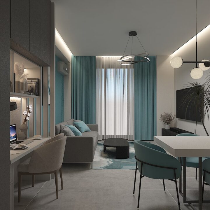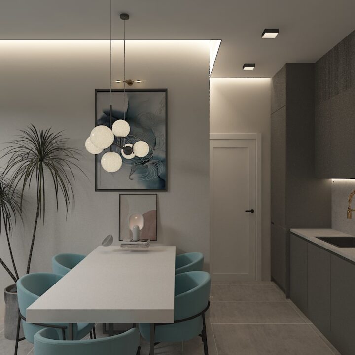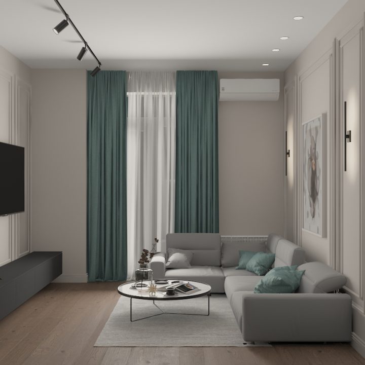 ჩვენს მიერ შესრულებული 43 კვადრატული ბინის დიზაინი თანამედროვე სტილში