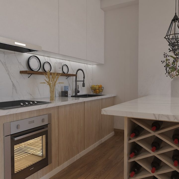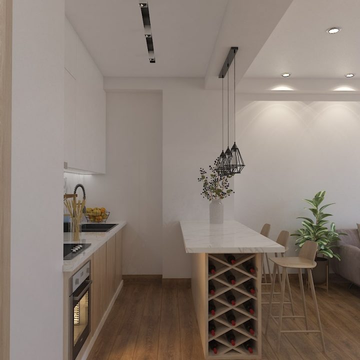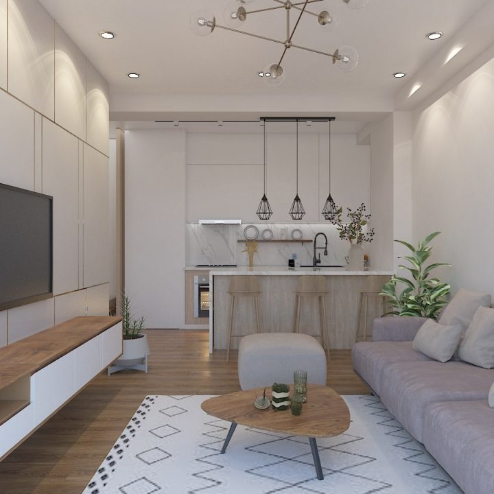 ჩვენს მიერ შესრულებული ბინის დიზაინი ნათელ ფერებში
