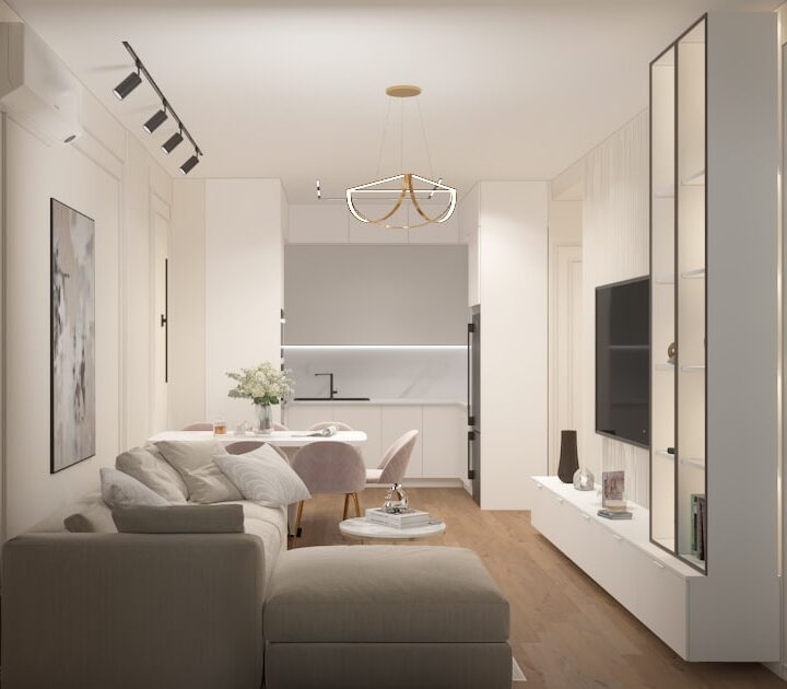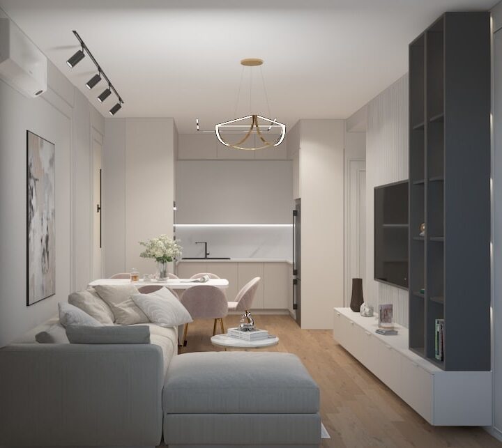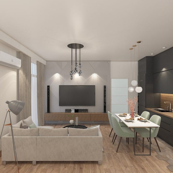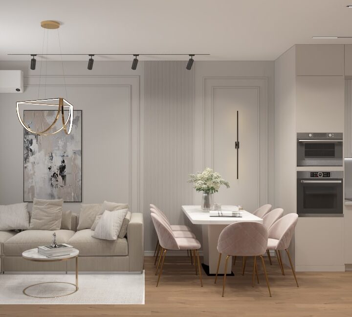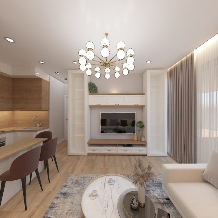 სტუდიო მისაღები სამზარეულო , ორი საძინებლითა და აბაზანით
