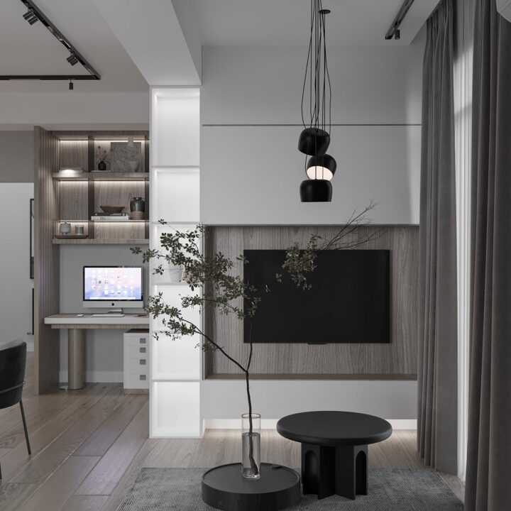 ჩვენს მიერ შესრულებული ბინის დიზაინი – 80 კვადრატული სტილი – თანამედროვე მისაღები სამზარეულო – 26 კვადრატული შემოსასვლელი – 7.5 კ ვადრატული საძინებელი #1 – 16.5 კვადრატული საძინებელი #2 – 13.5 კვადრატული საძინებლის აბაზანა – 3.6 კვადრატული საძინებლის გარდერობი – 2.5 კვადრატული აბაზანა – 5 კვადრატული