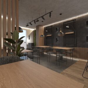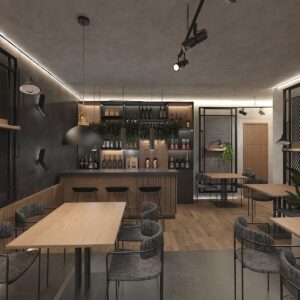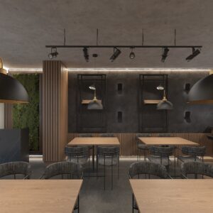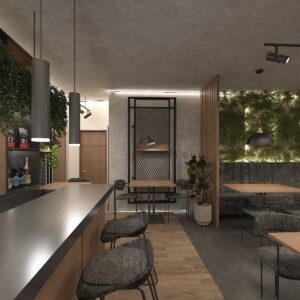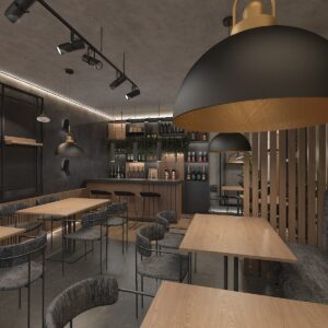 ჩვენ მიერ შესრულებული კაფის დიზაინი ბათუმში , შესრულებულია ლოფტის სტილში