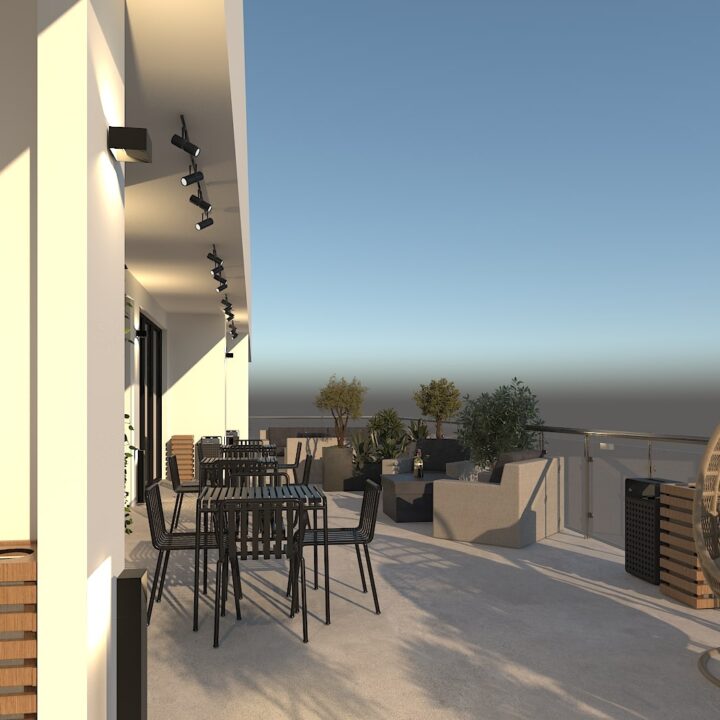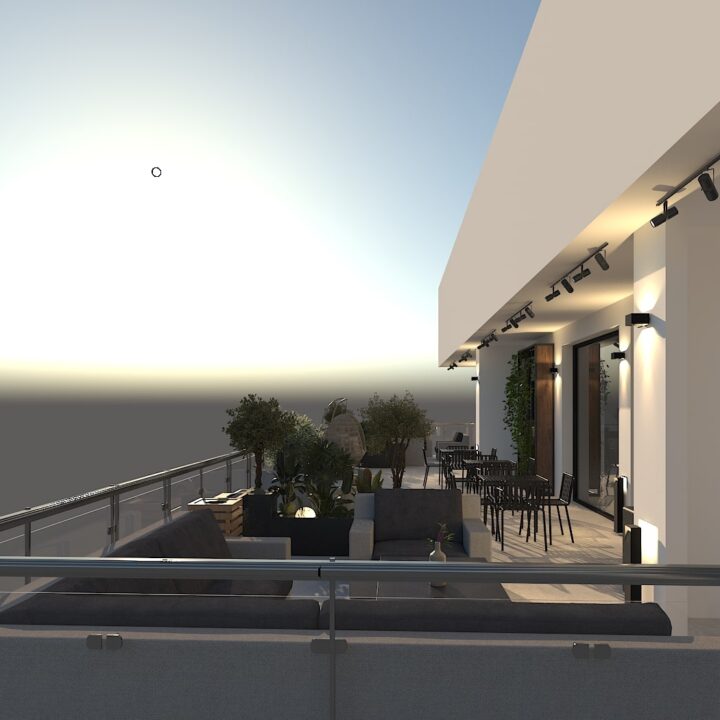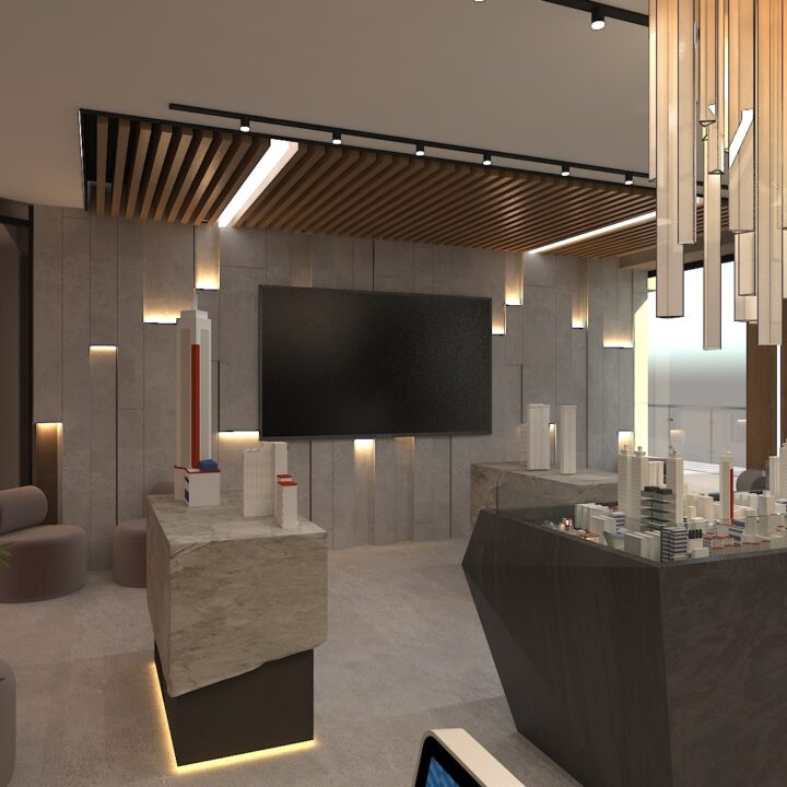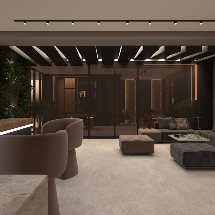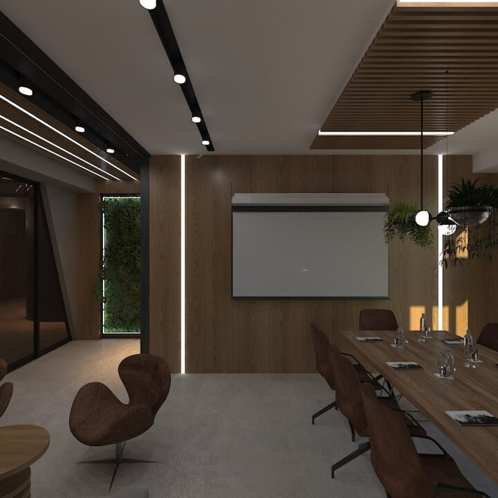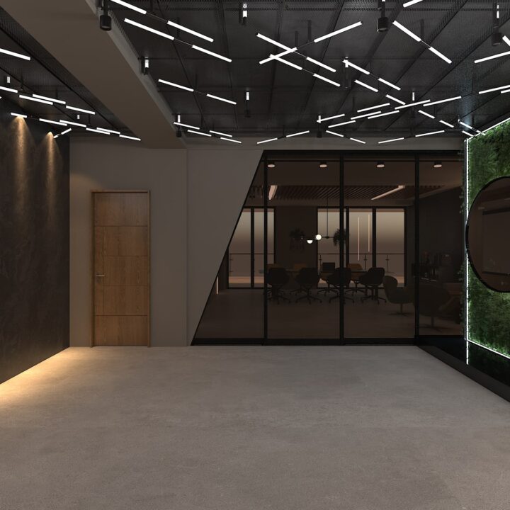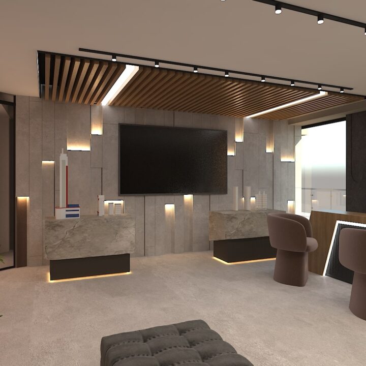 ოფისი განლაგებულია 1 სართულზე და მისი კვადრატობა შეადგენს ჯამში 500 კვადრატს: განთავსებულია დიდი მიმღები, სივრცეში არის : აბაზანები, სასადილო ოთახი, შორუმების რამდენიმე ოთახი, ოთახი იურისტებისათვის და ბუღალტრებისათვის, დირექტორის ოთახი, საწყობი, ტექნიკური ოთახი , მაკეტების ოთახი და ყველაფერი იმისათვის რომ თანამშრომლებს ქონდეთ იდეალური სამუშაო გარემო . სივრცეს განსაკუთრებულად უცხოს ხდის , დიდი ქვის ფილების დეკორები, განათებები და ხის ჭერი