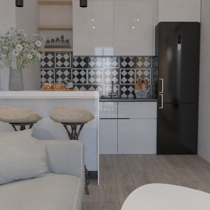 40 კვადრატულიანი ბინის დიზაინი მინიმალისტურ სტილში