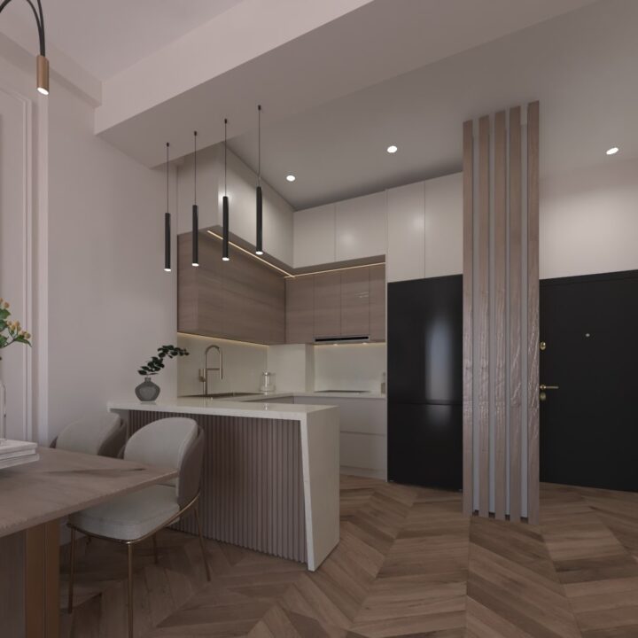 ჩვენს მიერ შესრულებული 43 კვადრატული ბინის დიზაინი ორთაჭალაში