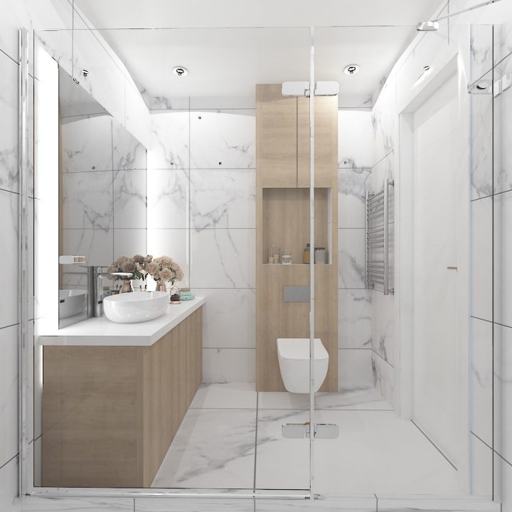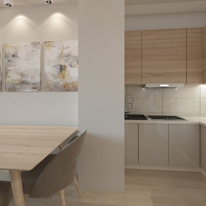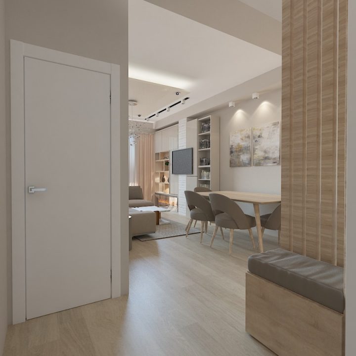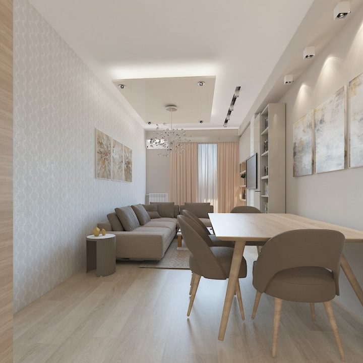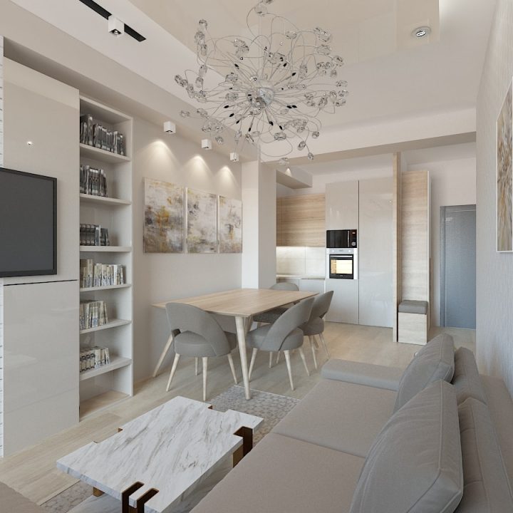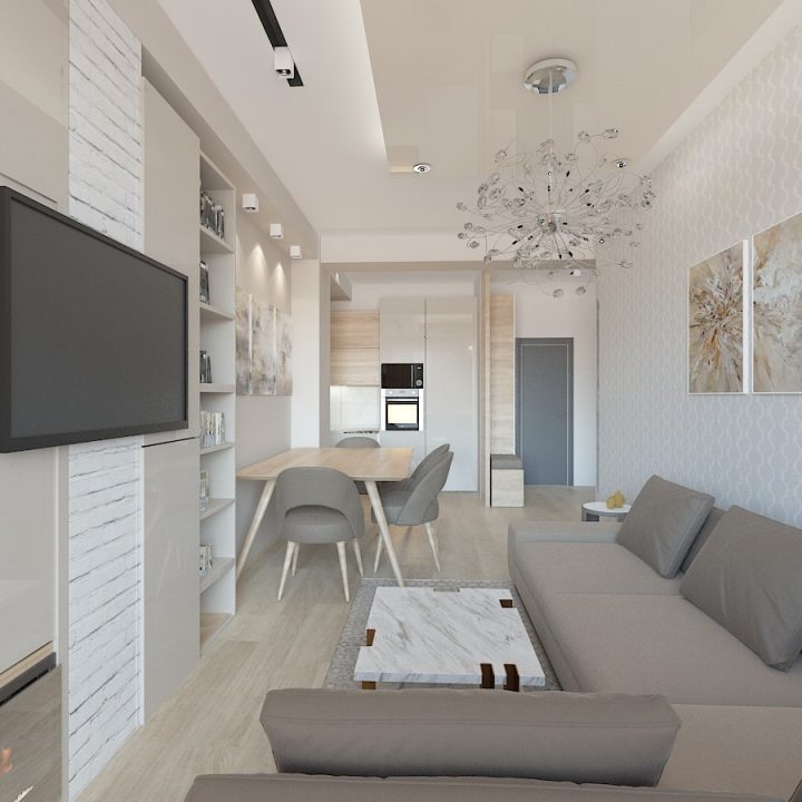 ჩვენს მიერ შესრულებულლი “55 კვადრატულიანი” ბინის დიზაინი ნათელ ფერებში