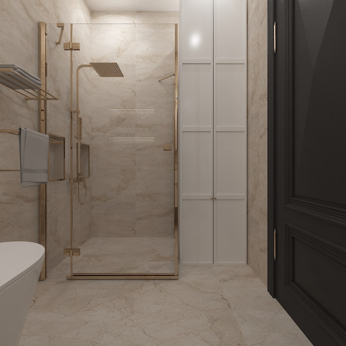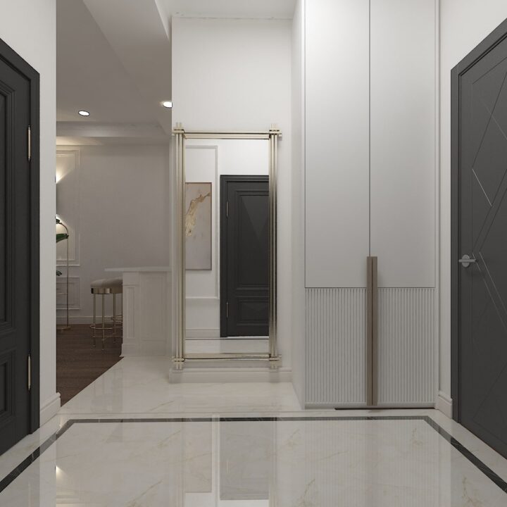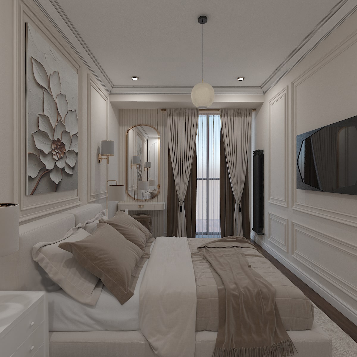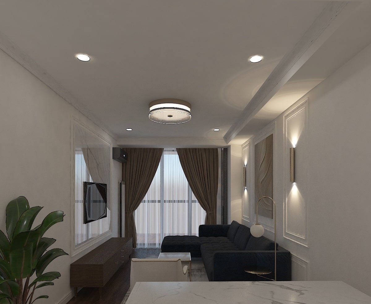 64.5 კვადრატული მეტრი ბინის დიზაინი ორთაჭალაში – სტუდიო მისაღები სამზარეულოთი , ერთი საძინებლითა და აბაზანით