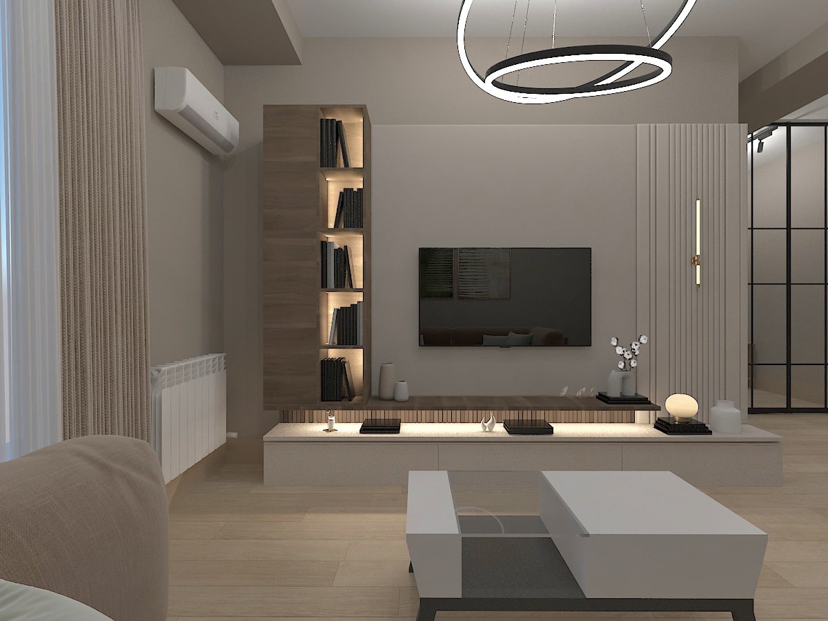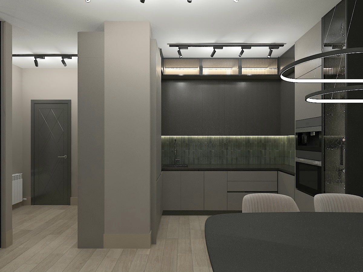 „70 მ² ბინის დიზაინი“ სტუდიო მისაღები სამზარეულოთი , ერთი საძინებლითა და ვიტრაჟით გამოყოფილი კაბინეტითსტილი – თანამედროვე#დიზაინი #დიზაინერი #ინტერიერი #ინტერიერისდიზაიი #დიზაინერებისსახლი #ბინისდიზაინი #ბინალოკაცია – თბილისი, პ.ქავთარაძის ქუჩა