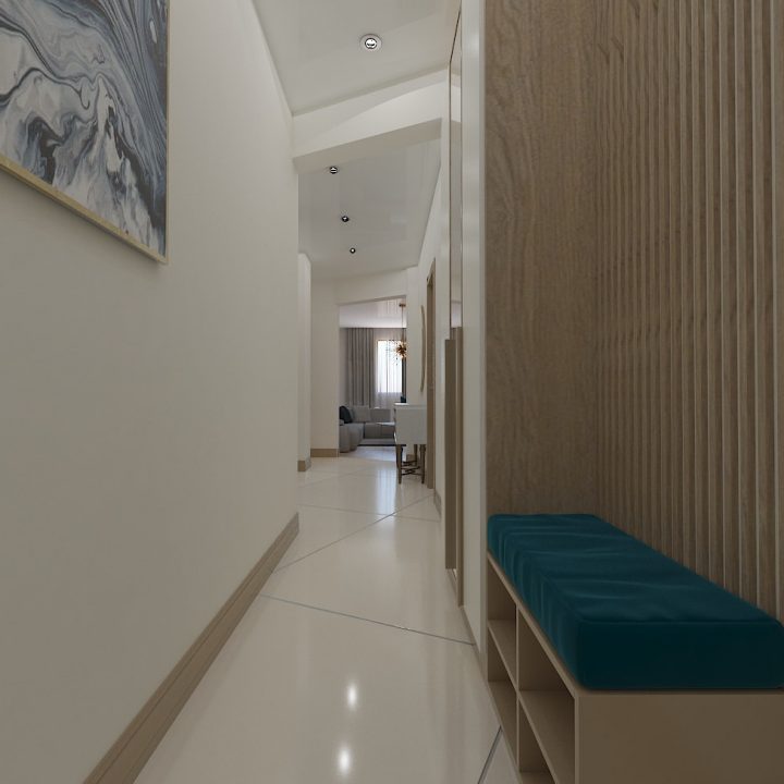 ჩვენს მიერ შესრულებული “95 კვადრატულიანი” ბინის დიზაინი ნათელ ფერებში .ბინა გადაწყვეტილია ნათელ და სადა ტონალობებშისტილი – თანამედროვე , სკანდინავიურიფერები – კრემისფერი, ატმისფერი, იისფერი და ლურჯი