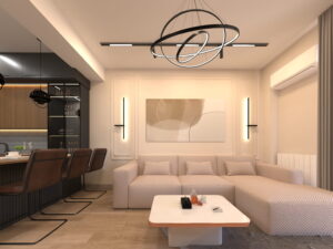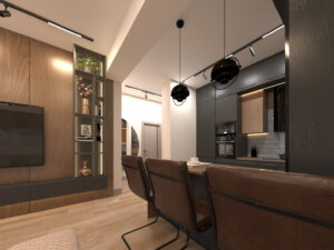 წარმოგიდგენთ ჩვენ მიერ შესრულებულ ნამუშევარს 54 მ2 ბინის დიზაინს M2 -ის კომპლექსშისტუდიო მისაღები სამზარეულოთი , იზოლირებული საძინებლითა და აბაზანით