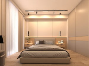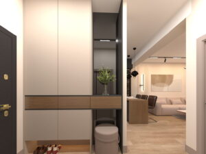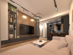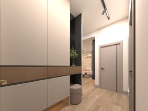 წარმოგიდგენთ ჩვენ მიერ შესრულებულ ნამუშევარს 54 მ2 ბინის დიზაინს M2 -ის კომპლექსში